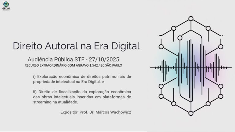 O Grupo de Estudos de Direito Autoral e Industrial – GEDAI/UFPR é um grupo acadêmico de estudos jurídicos especializado em propriedade intelectual e novas tecnologias, fundado em 2007 e vinculado ao PPGD/UFPR desde 2013, atuando diretamente no suporte de processos legislativos, instituições de preservação cultural e organizando dezenas de eventos e publicações desde sua criação.